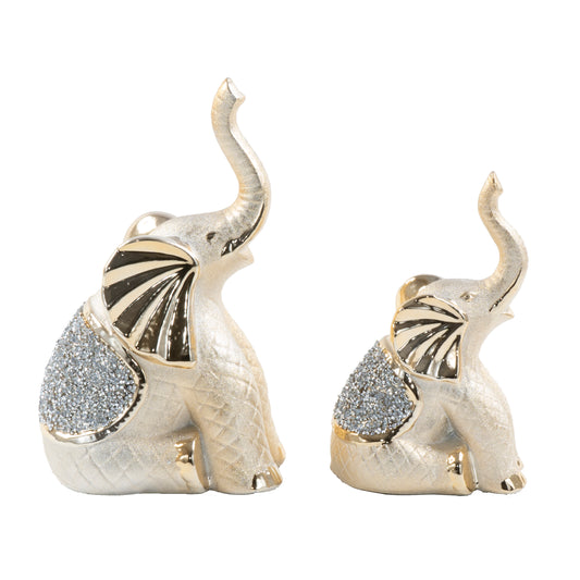 2pc Diamond Elephant Set Decor