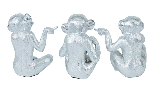 3pc Silver Monkeys Decor (Hear no Evil, Speak no Evil, Hear no Evil)