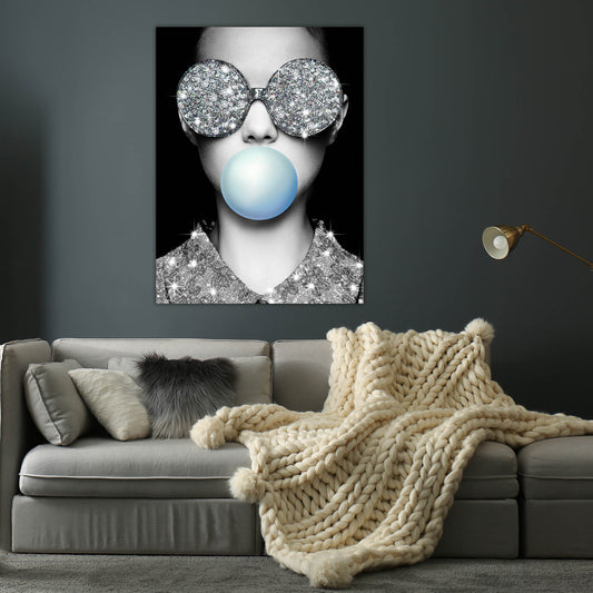Women w/ Bubble Gum Glass Wall Art 32"x48".