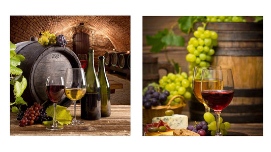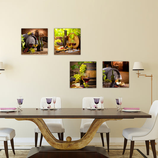 Wine Cups Barrel Kitchen Glass Wall Art 24"x24"