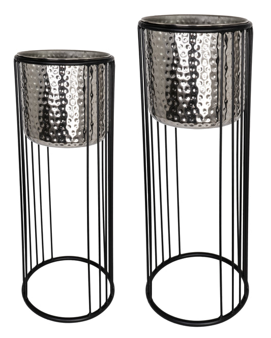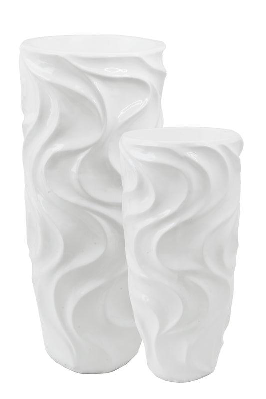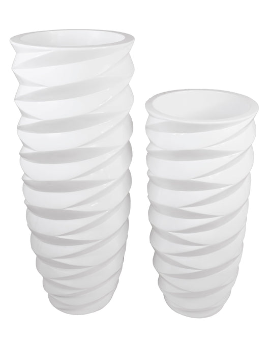 Wood Veneer Top Fiberglass Floor Vase Planter.