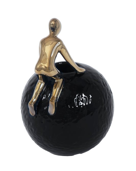 Man Crawling on Ball Sculpture.