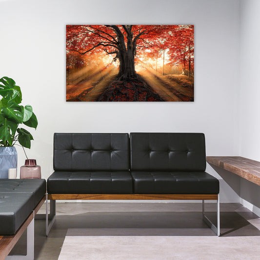 Fall Sunset Tree Glass Wall Art 60"x36".