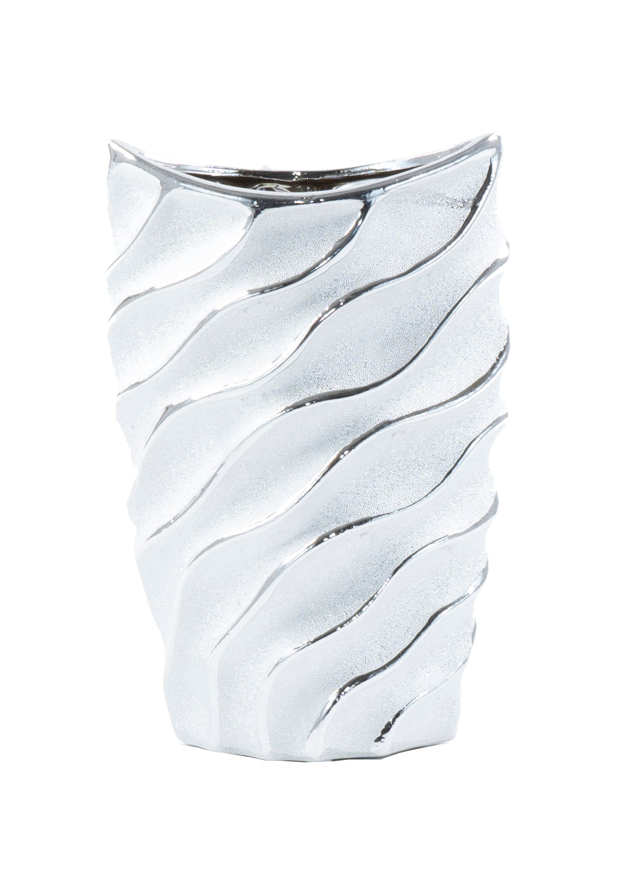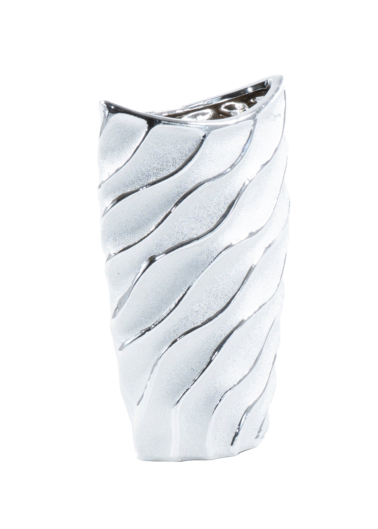 Add some glam to your home with this modern silver vase. This striking vase with its detailed lines will be the center of attention in any room in your home. This vase is crafted from 100% ceramic material with a silver finish.