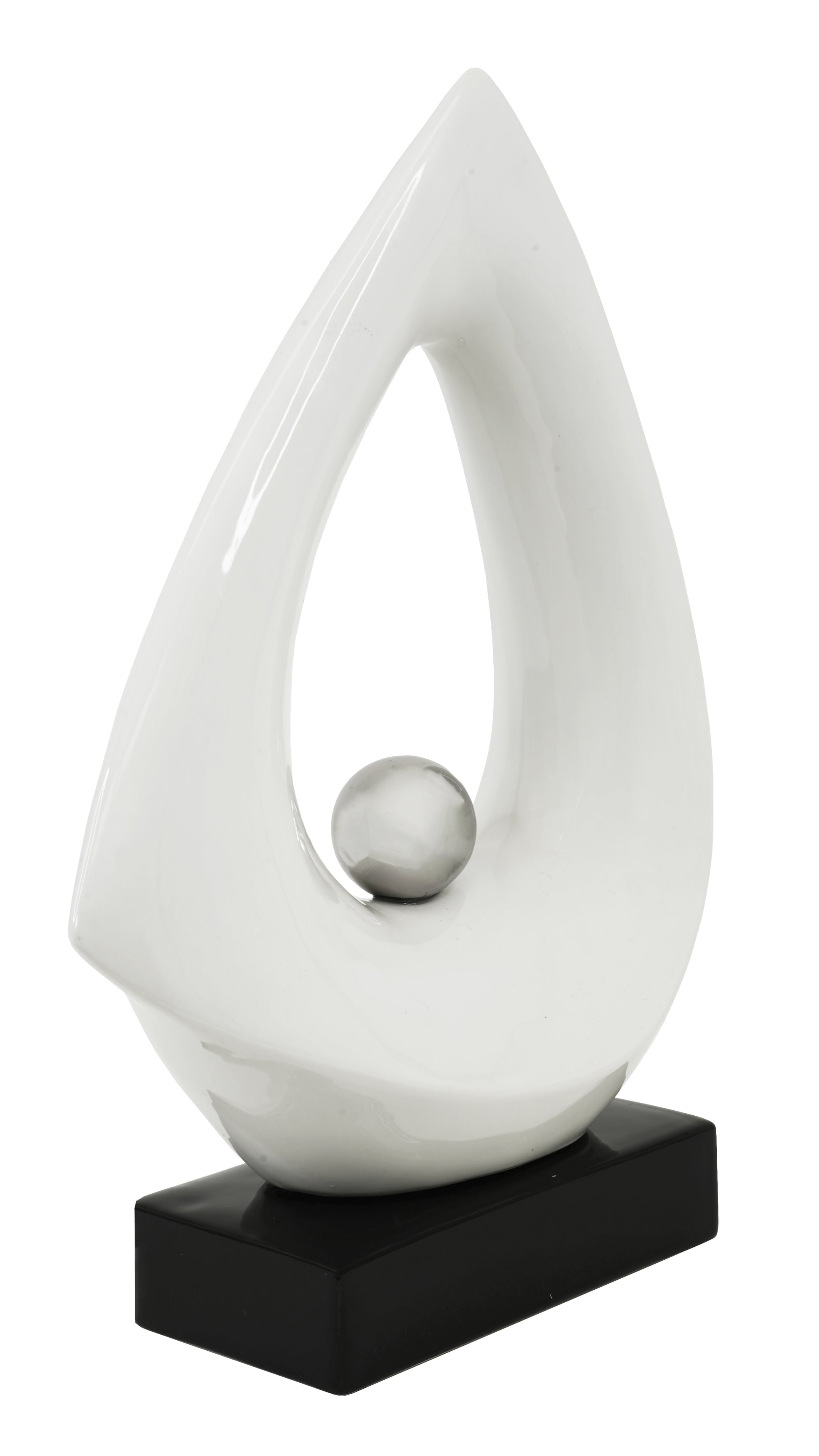 This modern tabletop sculpture features a striking, abstract design that adds a unique touch to any space. Crafted with precision and style, it serves as a perfect statement piece for any art enthusiast or interior designer. Elevate your decor with this one-of-a-kind sculpture.