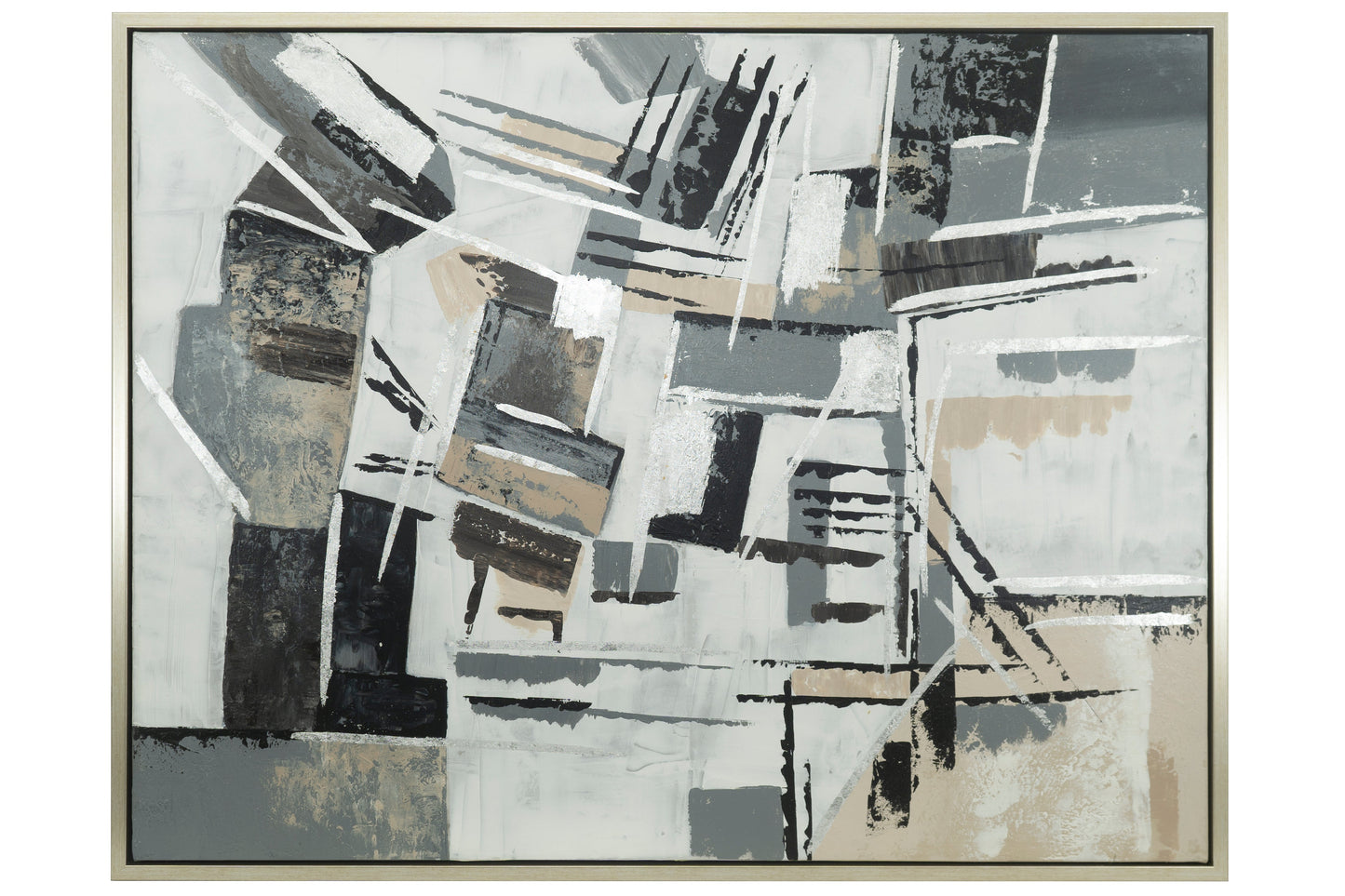 This painting print brings abstract style and a neutral color palette to your living space. Overlapping lines and brushstrokes in black and beige. Bold without being overpowering, it complements modern and contemporary decor styles alike