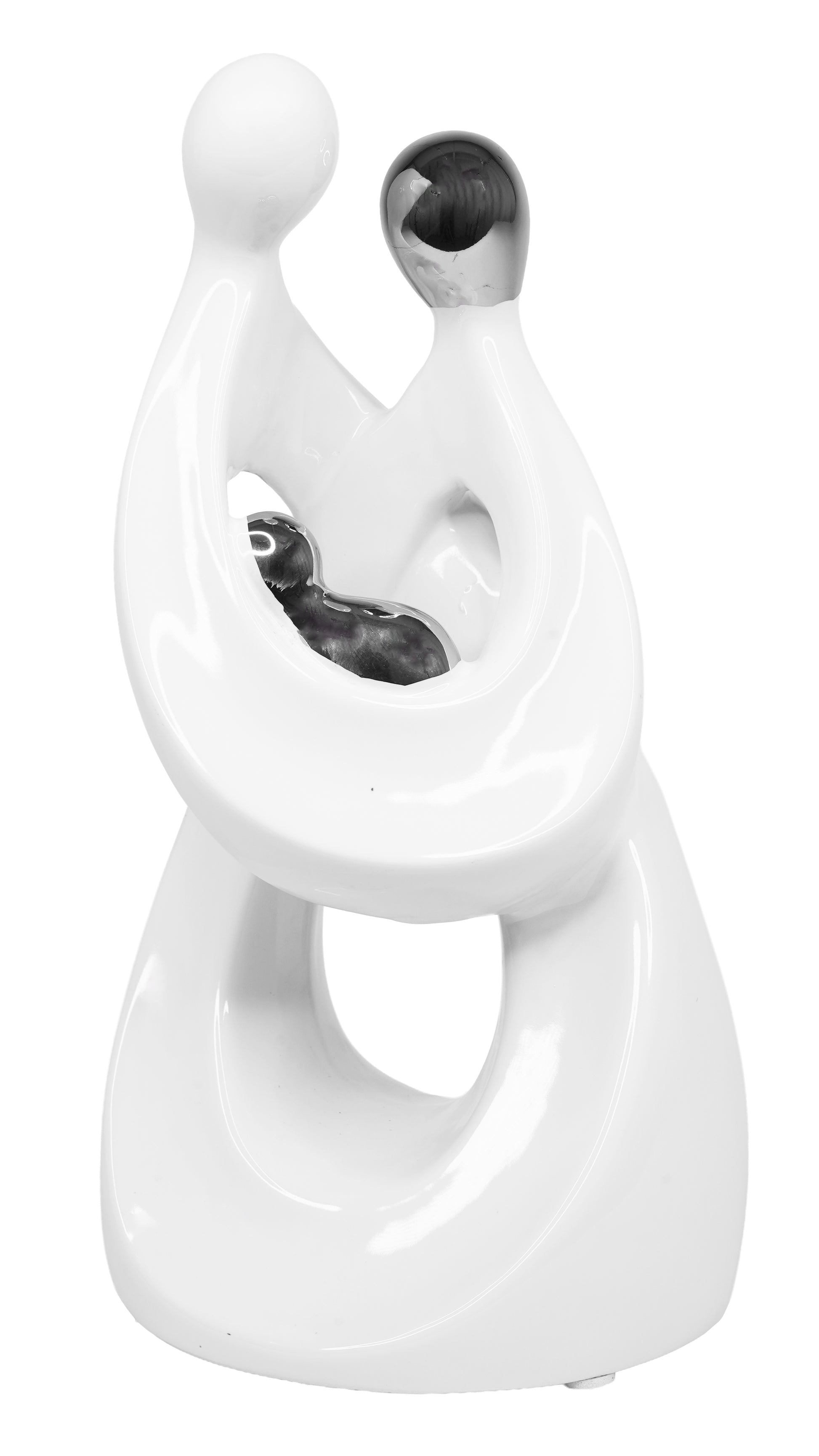 Celebrate the bonds that matter most with this elegant Family of Three Sculpture. Crafted in pristine white with shimmering gold accents, this piece captures the warmth and connection of family in timeless form. Perfect for displaying on shelves, mantels, or side tables, it brings sophistication and heartfelt meaning to any room. Whether you're decorating your own home or searching for a meaningful gift, this sculpture serves as a beautiful reminder of love and togetherness that transcends trends.