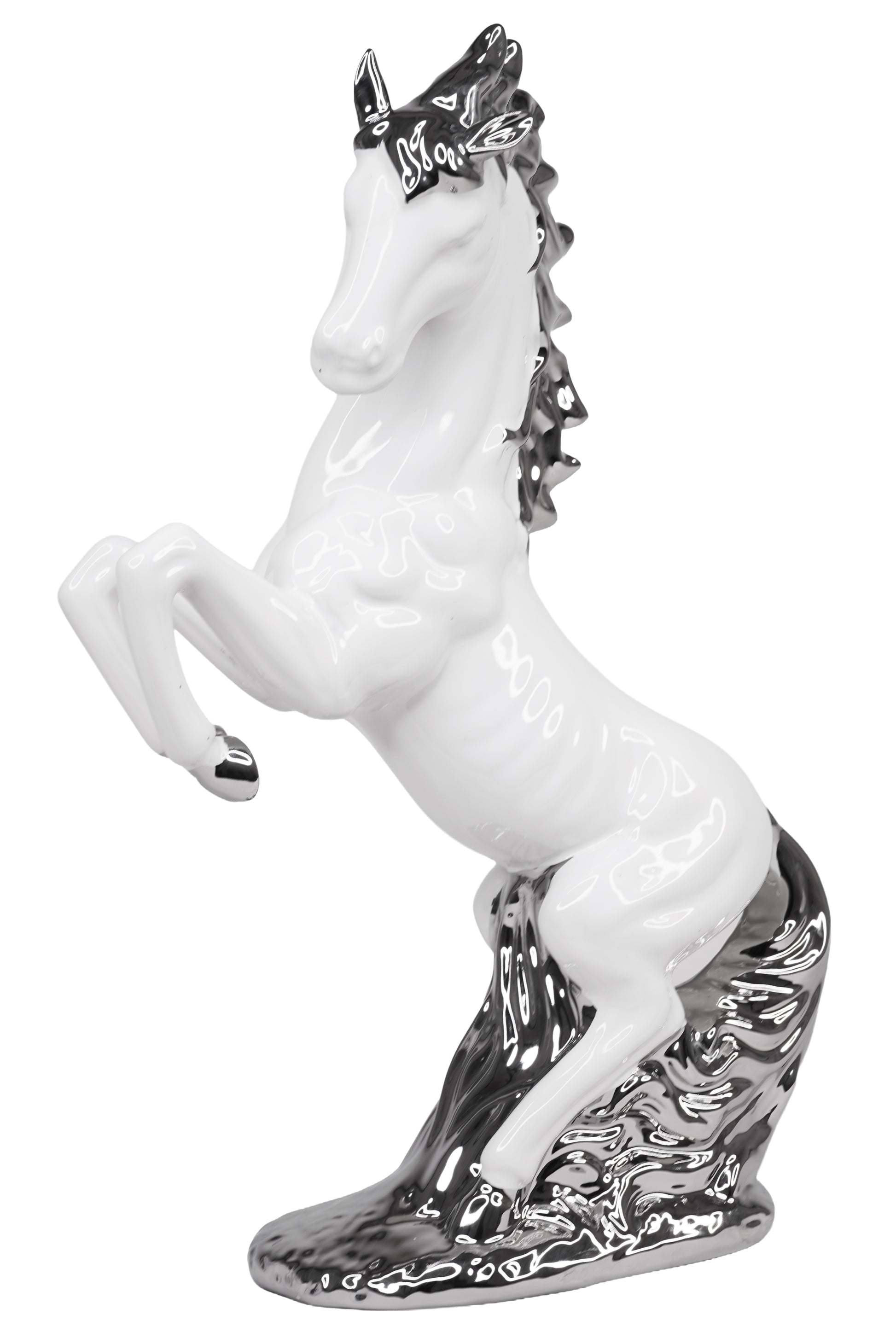 The pristine white body enhanced by elegant silver accents creates a bold visual statement that demands admiration. Whether displayed on a prominent shelf, mantel, or entryway table, this powerful horse sculpture becomes an instant focal point that speaks to your refined taste and appreciation for dynamic art. Transform your space with sculptural presence that inspires.