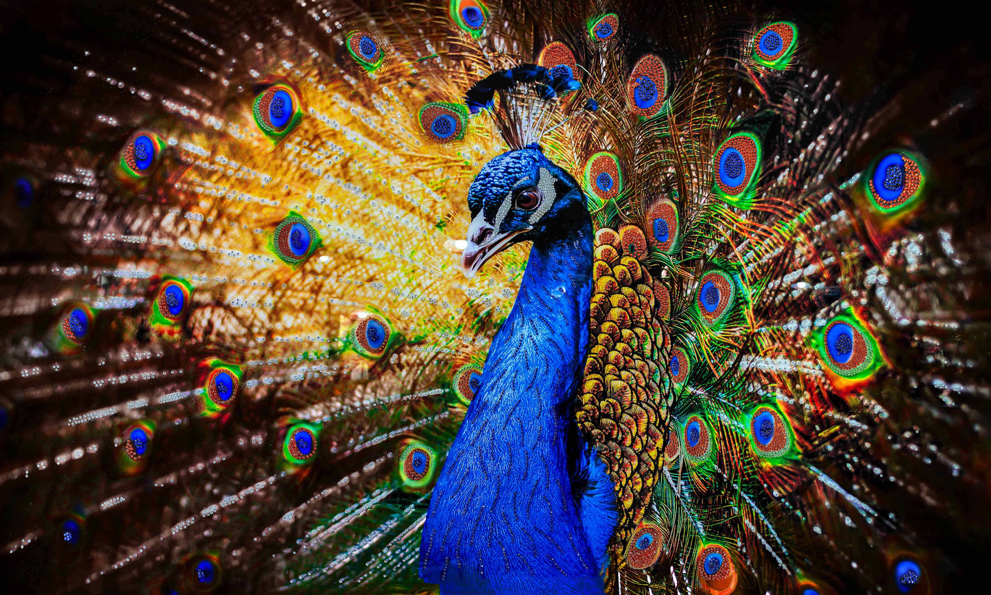 Peacock Glass Wall Art w/ Crystals 60"x36"