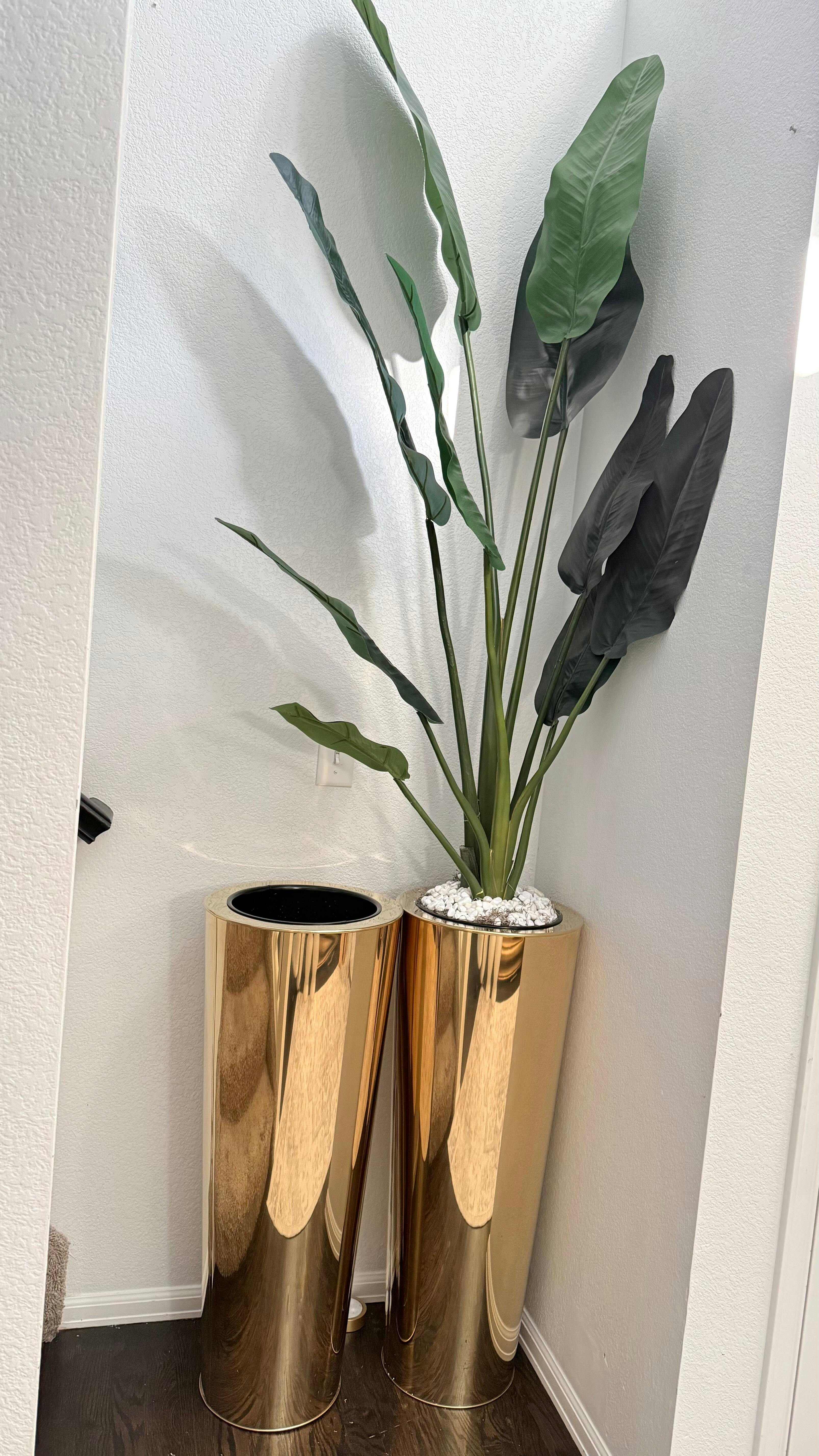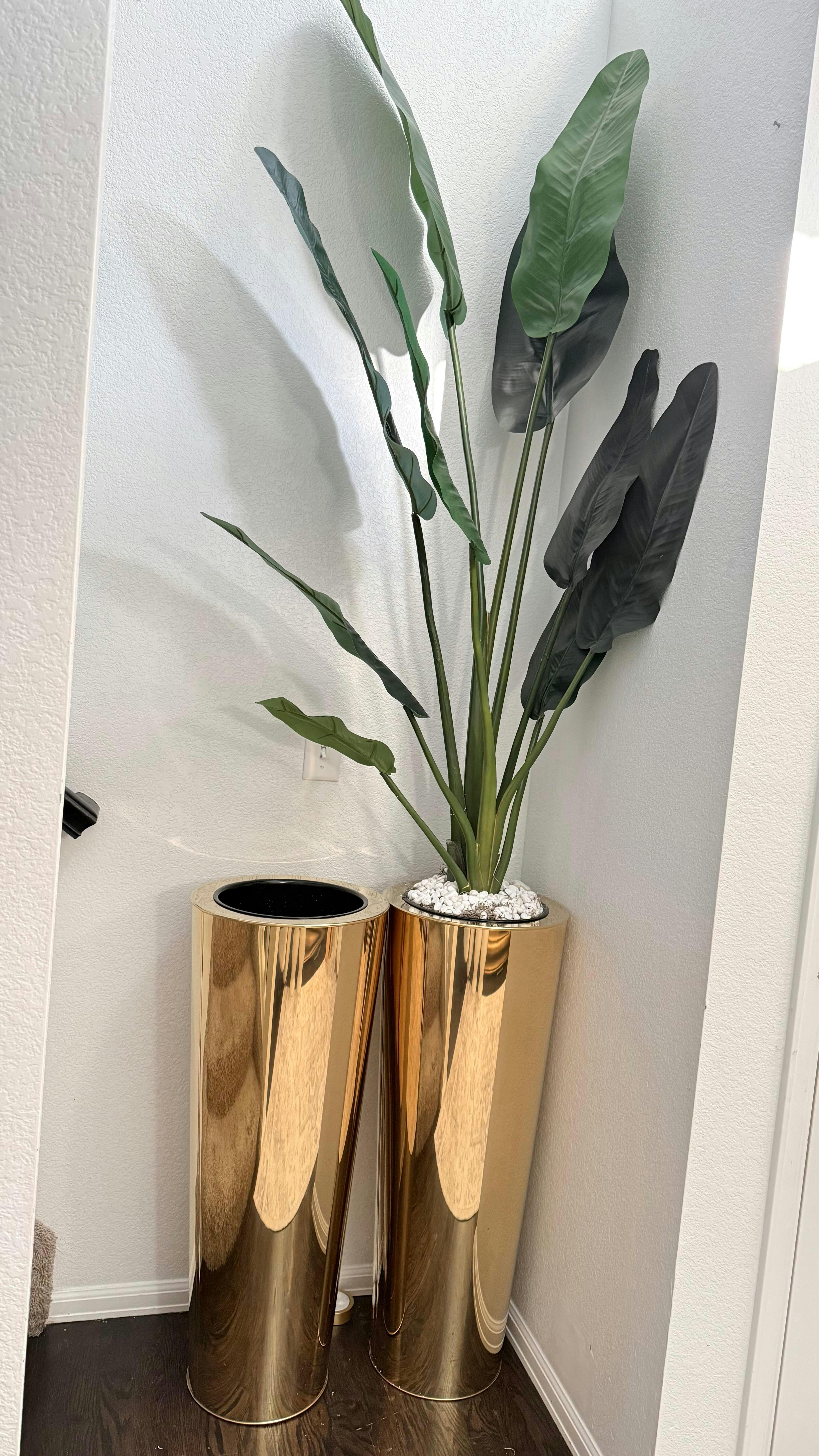 Sleek and elegant, these polished aluminum cylinder vases stand out for their versatility. Perfectly finished, it will accent your home, garden and terrace wonderfully.