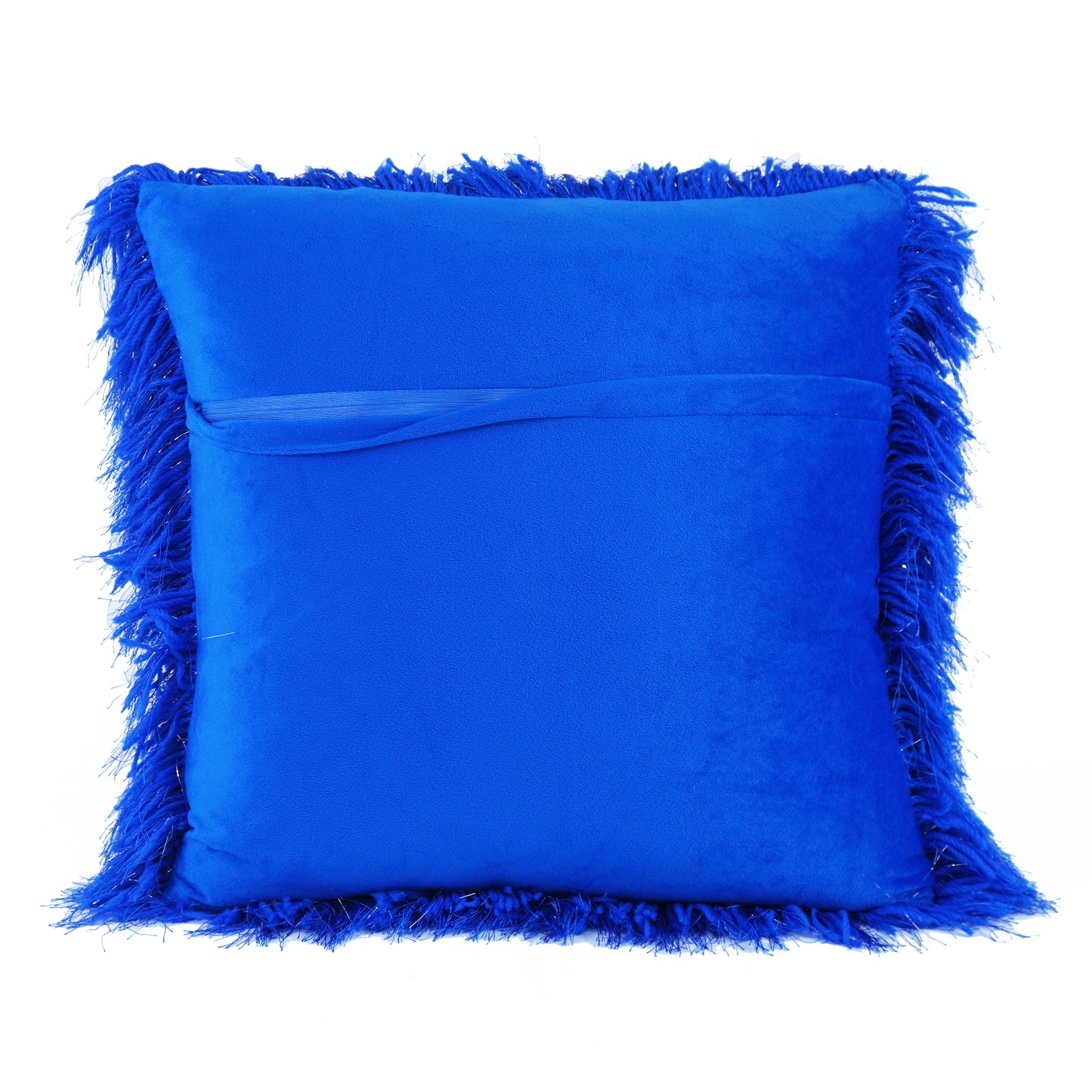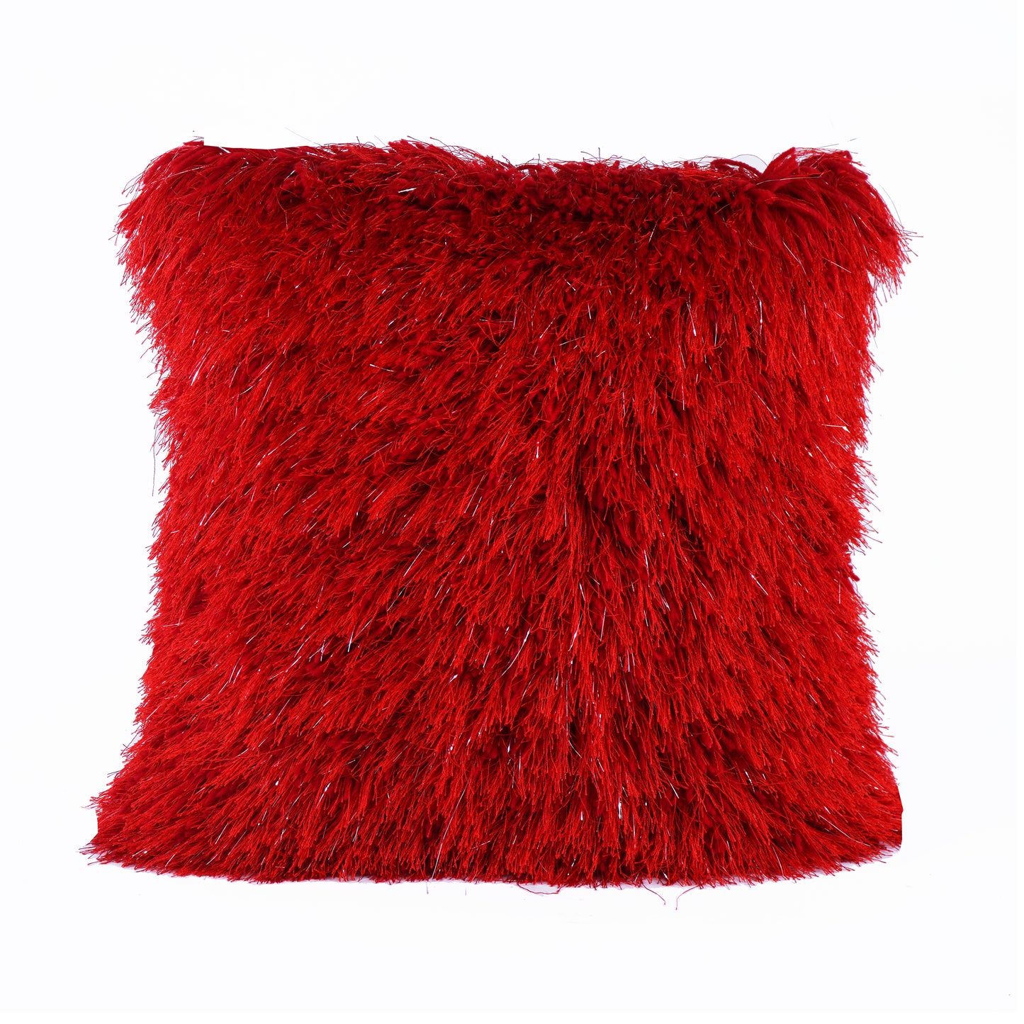 Add aesthetic value with these mix & match colorful shaggy lurex throw pillows. The vivid colors will add life to your bed, sofa, couch or any chair in your stylish home. The vibrant pillow covers are made from soft lurex threads that feel sophisticated and gentle to touch. Available in red, gold, silver, blue, white/black, and white with a zipper closure design. Cushion included. Indoor use only.