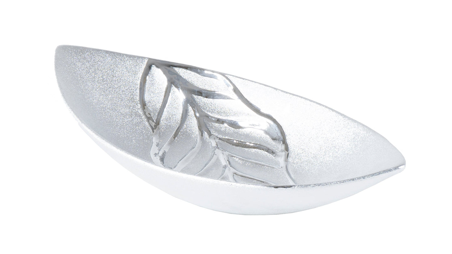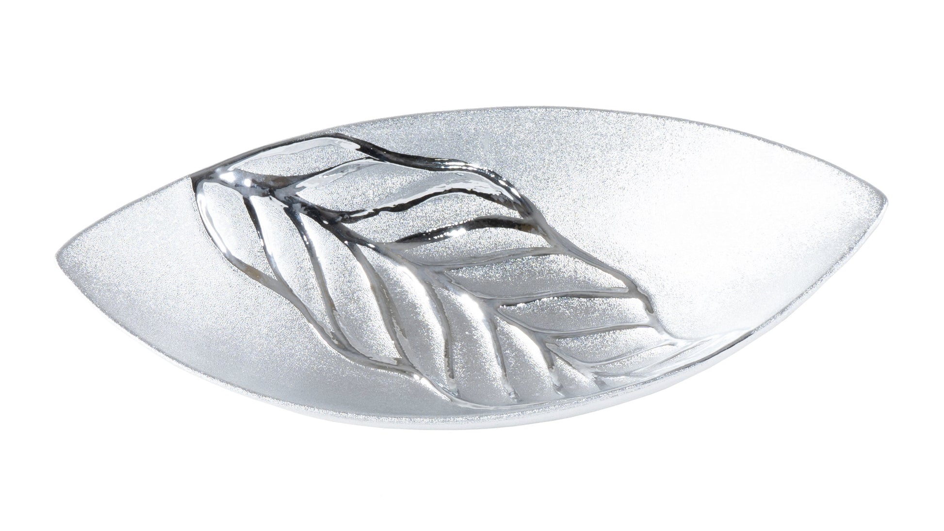 This modern style plate is not only functional but stylish. Can be used a serving tray or center piece to place ornaments on. This stunning silver plate has a unique handcrafted leaf design. This one of a kind plate is crafted from 100% material with a silver finish.