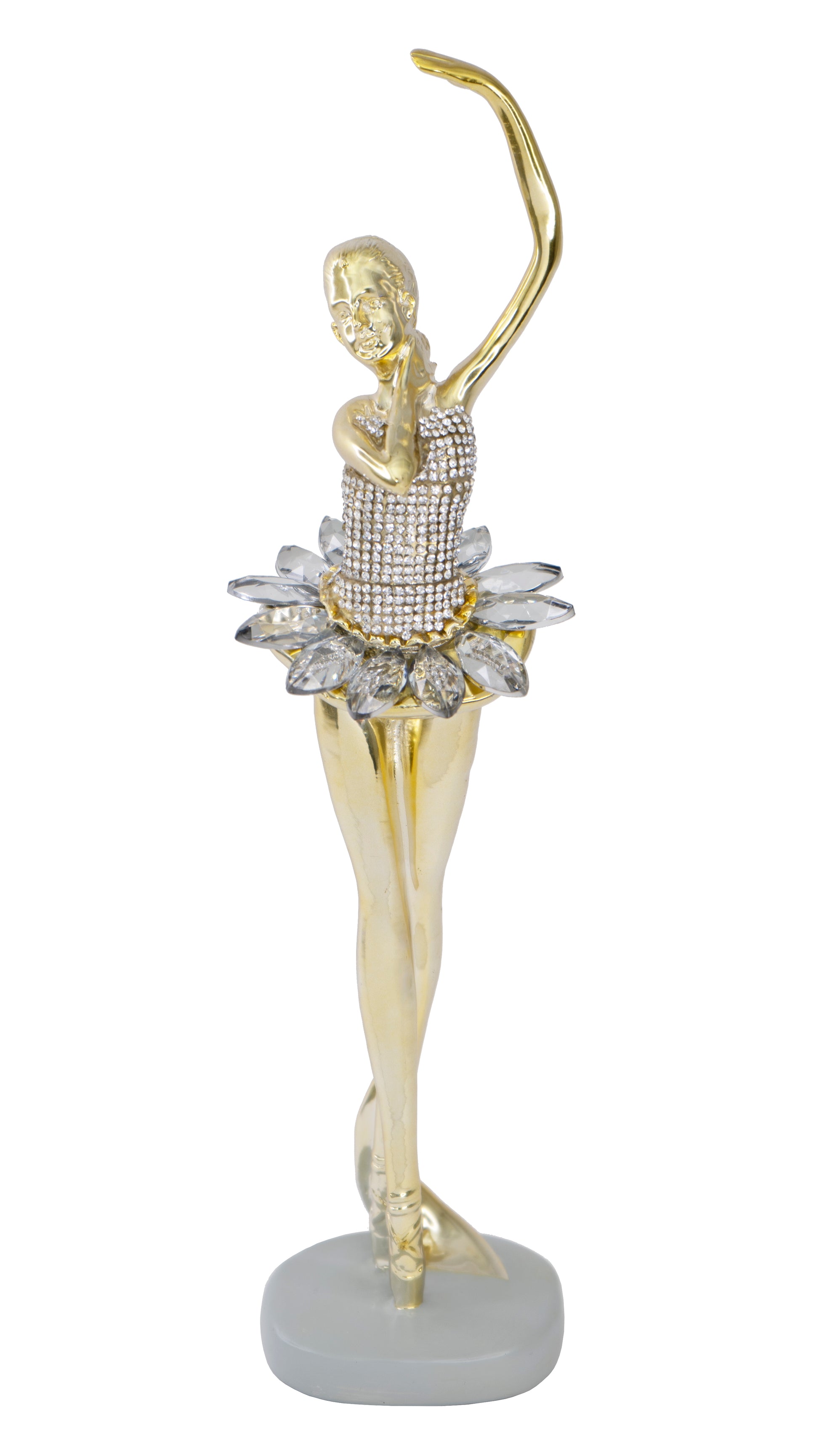 Ballet is a hidden language perfectly portrayed in this ballerina sculpture. The flowing lines of elegance bring a graceful touch to any area of the home or dance studio. The contemporary piece is fabricated from high quality ceramic material, detailed with rhinestones. The majestic silver finish adds the perfect blend of modern to the timeless art of dance.