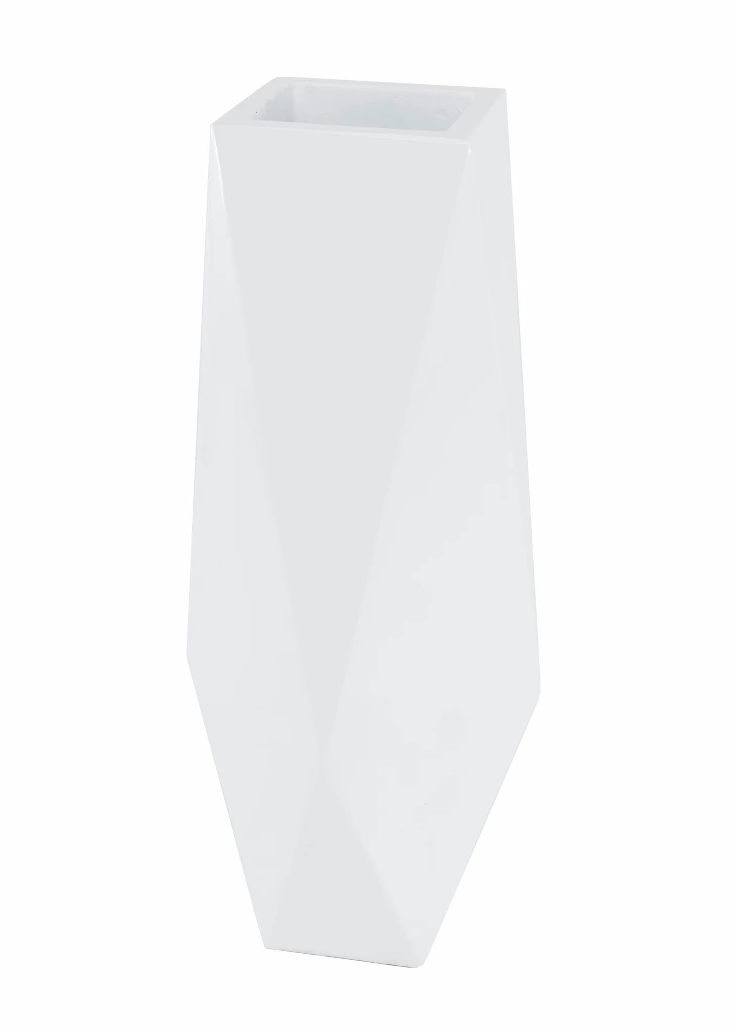 Bring any room of your house to life with these alluring modern white vases. A great addition to your modern living room or dining room. Fabricated from the highest quality fiberglass material and finished with polished white paint. For indoor use.