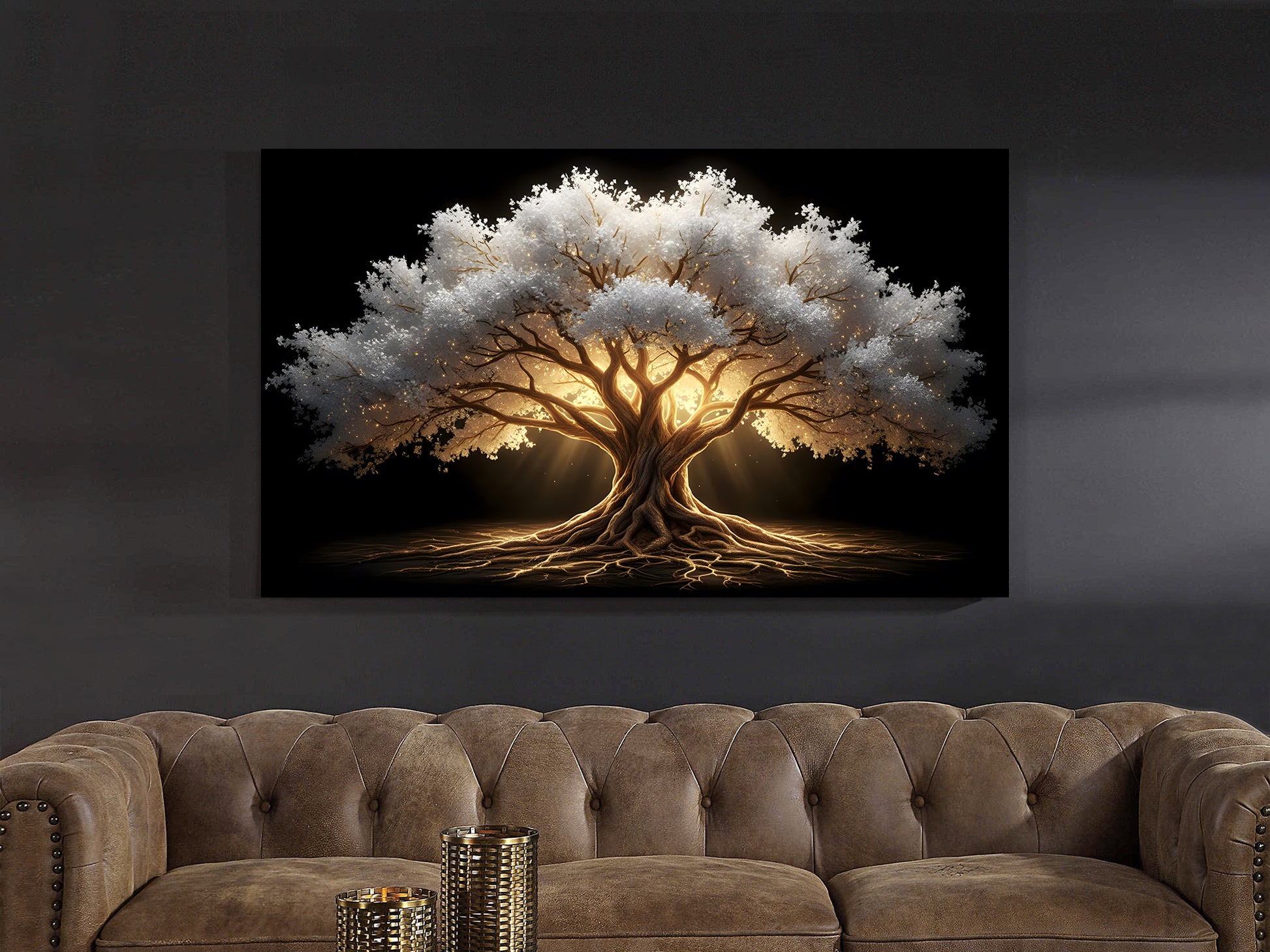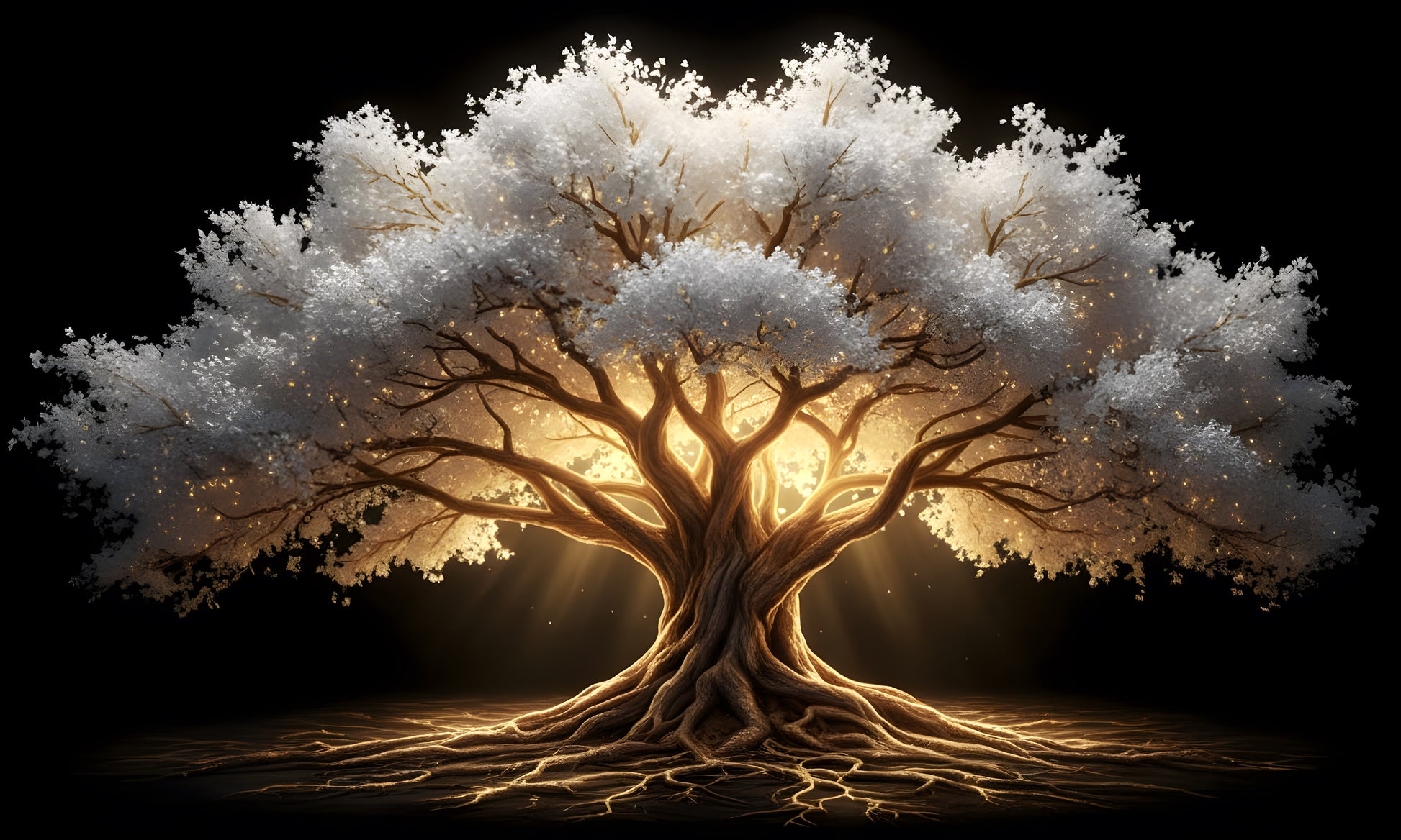 White/Gold Tree Of Life Glass Wall Art 60"x36"